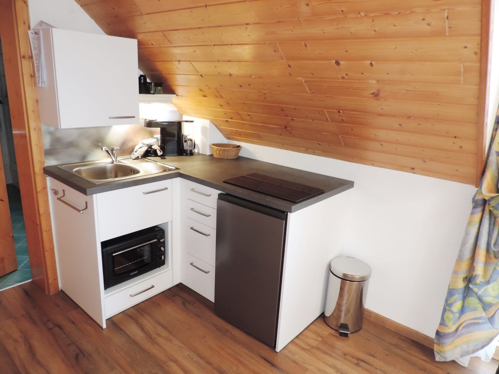 Unser helles, gemütliches "Gänseblümle" ist ausgestattet mit einer neuen modernen kleinen Küchenzeile (Kühlschrank, Herd, Geschirr, Minibackofen, Kaffeemaschine oder Senseo-Padmaschine vorhanden).